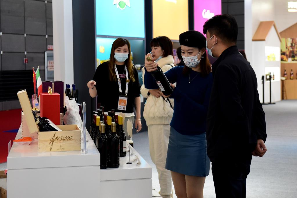 11月20日,观众在2021世界制造业大会进口商品展区选购。新华社记者 黄博涵 摄
